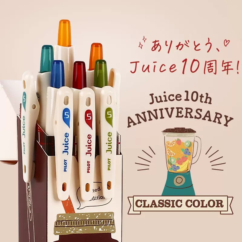 日本百楽pilotジュースペン10周年限定中性筆セット復古色限定金10周年筆
