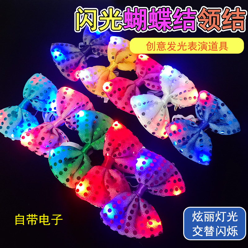 発光スパンコール蝶ネクタイ子供ビーズ蝶ネクタイ男女舞台演出蝶ネクタイ純色スポット卸売り