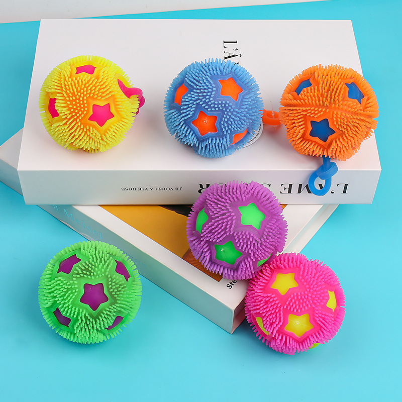 五星の毛玉を発散します。ひも付きのサッカーボールをつまんで発光します。