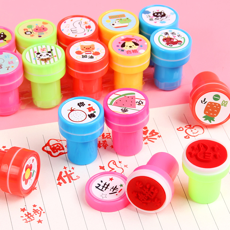 子供の幼稚園の学生は捺印のスタンプの漫画のかわいい保護者の教師で奨励して捺印します。
