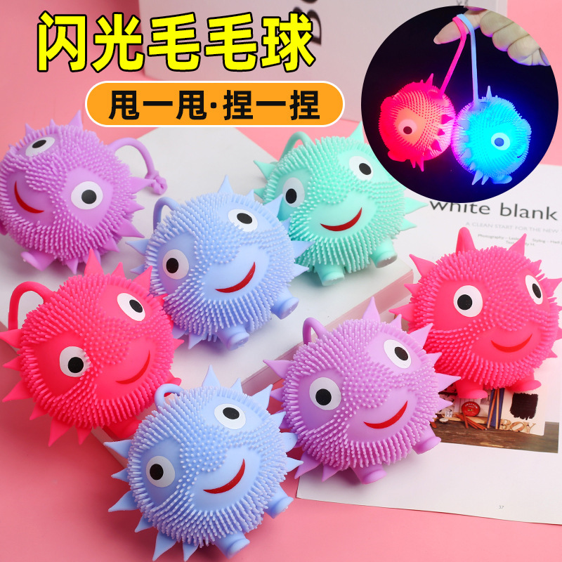 漫画の発光ハリネズミの毛玉の太陽の花の弾力性の閃光毛玉はおもちゃのボールの子供のおもちゃのバッチを発散します。