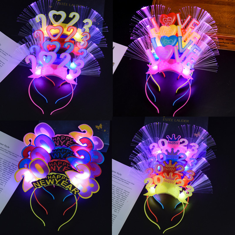 2023年新年の頭飾りランプ付きヘッドバンド元旦年越しコンサート道具子供玩具発光ヘアバンドメーカー