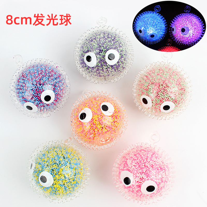 創意新型8cmの大きな目は空気の泡の発光ボールtprの減圧のおもちゃを押し出して発光ボールの卸売りを圧迫します。