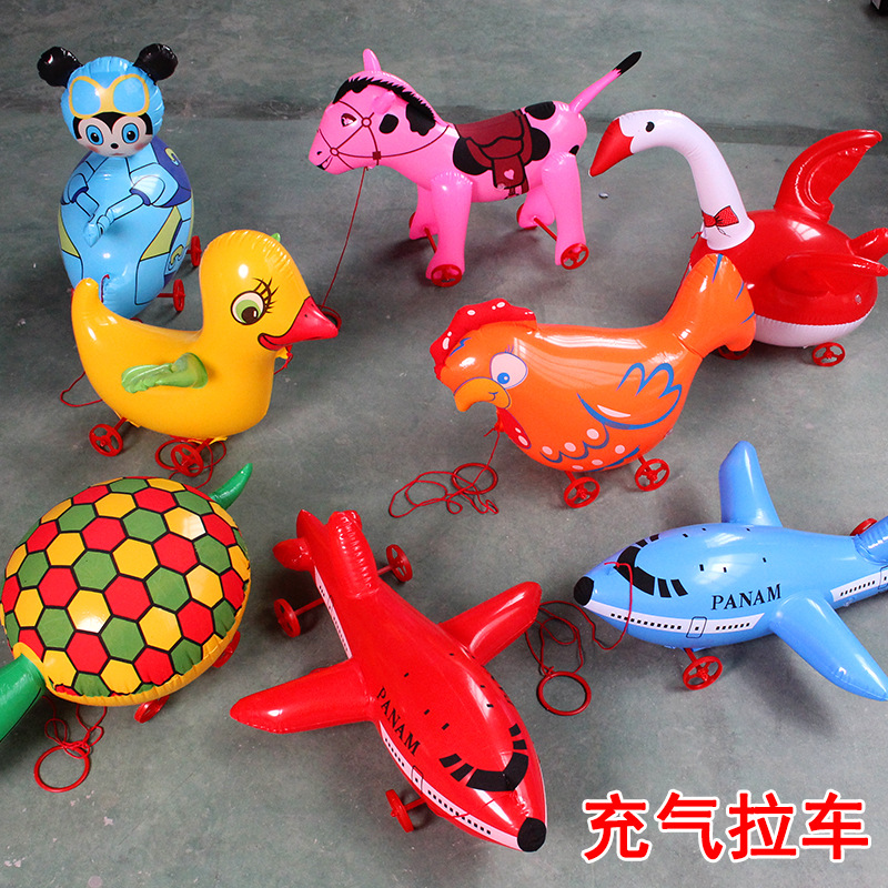 新型pvcアニメの形で車を引っ張る子供の空気を入れる動物の車を引くおもちゃの空気を入れる露店のおもちゃの卸売り