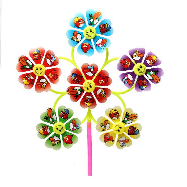 アニメ六輪笑顔風車七彩風車プラスチック六葉風車卸売り装飾風車