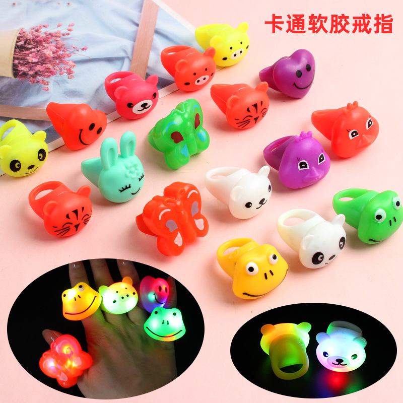 漫画ソフトゴム動物指輪プラスチックフラッシュled発光指輪複数のミックス子供アクセサリー発光玩具