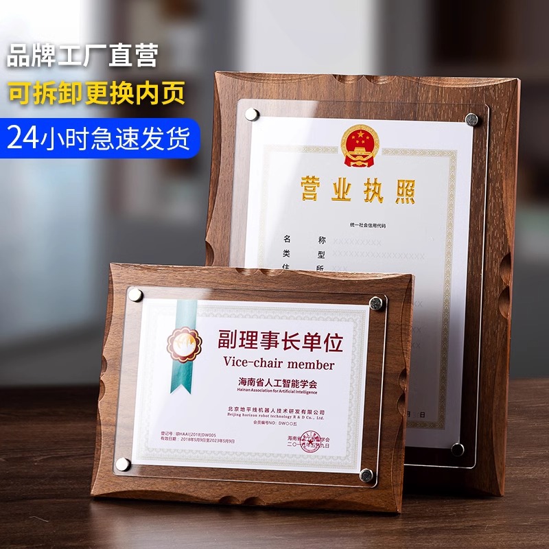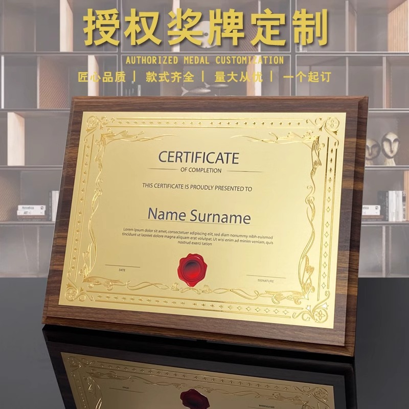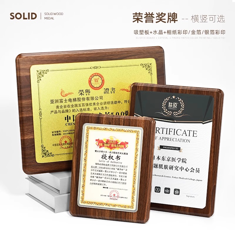 木製メダル卸売り製作アクリルa4フォトフレーム木托代理授権石版栄誉証明書シャビリー
