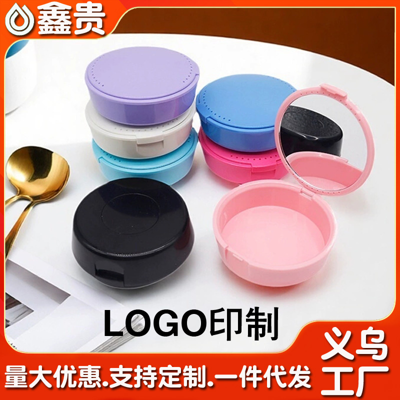 クロスボーダー歯科ミラー付きブレースボックスポータブル目に見えない義歯ボックス女性のブラッシュボックス化粧パフボックス卸売