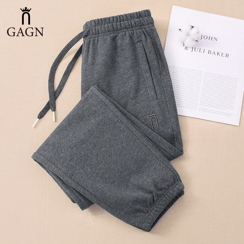 ダークグレーのカジュアルスポーツパンツ レディース 春秋用 スウェットパンツ レディース 2025年新作 秋物 純綿パンツ 秋用 大きいサイズ ロングパンツ