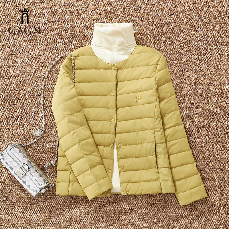 GAGN冬保温軽薄ダウン女装2024丸襟v襟カジュアルシンプル短い刺繍コートins