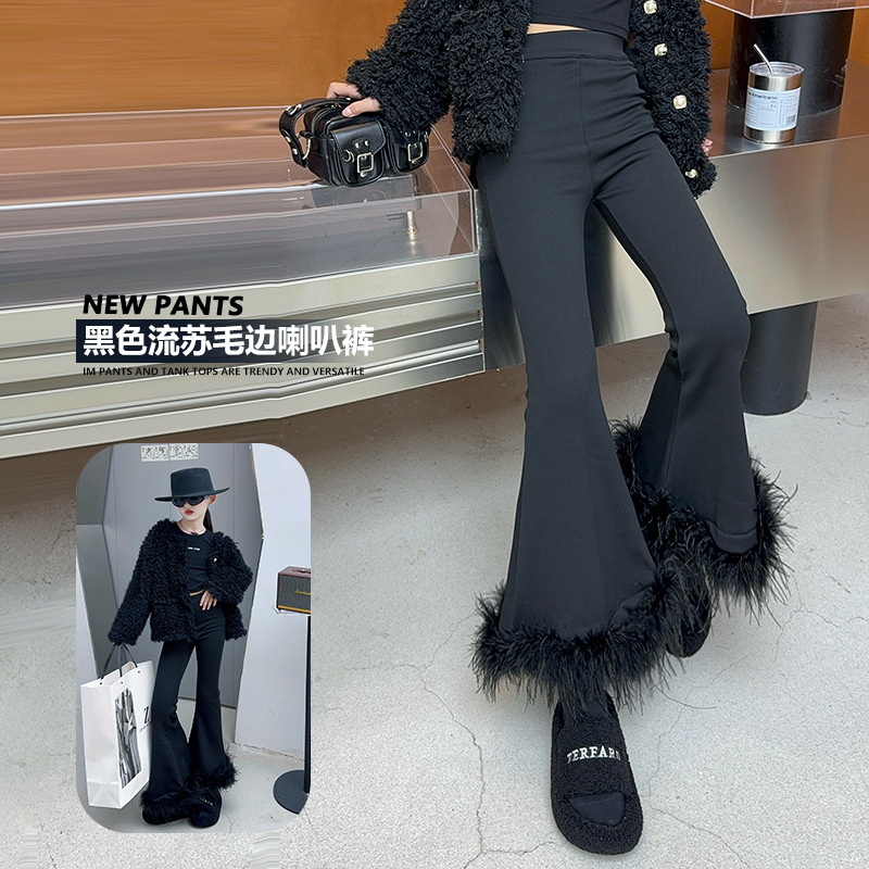 女の子の秋冬タイプのズボン2024の新しい子供の流行の修身ラッパのズボンの中の大きい子供の洋気の毛羽立ちのズボンの潮