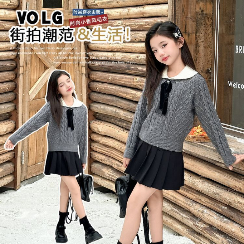 女児セーター学院風2024毛糸衣秋冬新作洋気子供メリヤス上着蝶結びクロスボーダー