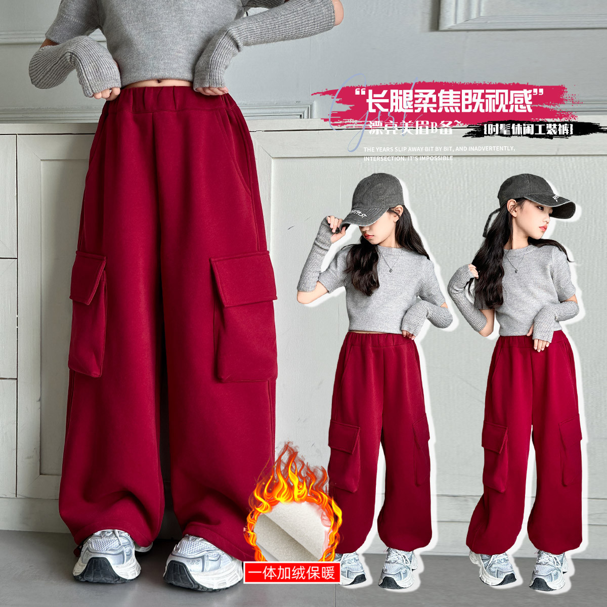女の子の子供のベルベットのジーンズの冬服2024の新しい洋中の子供の女の子の中学生のズボンの曲がったナイフのズボンが国境を越えている