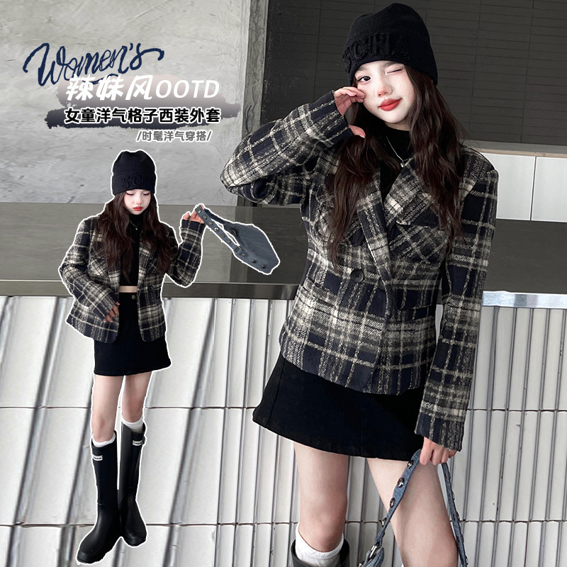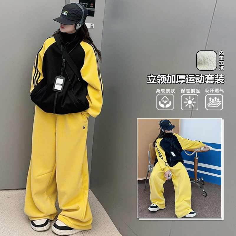 外国貿易の国境を越えた女の子とベルベットの厚いスーツ秋冬服2024の新しい女の子の子供運動中学生の保温服