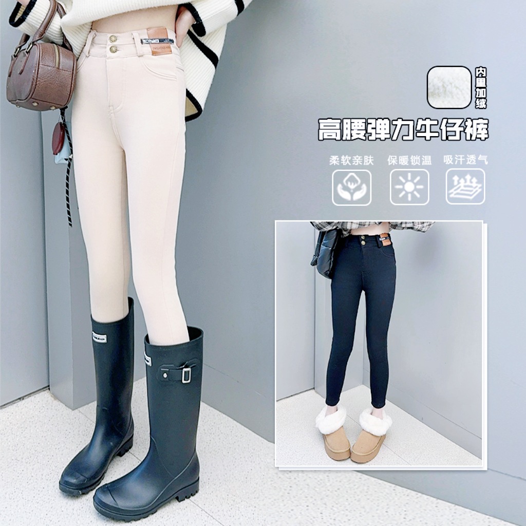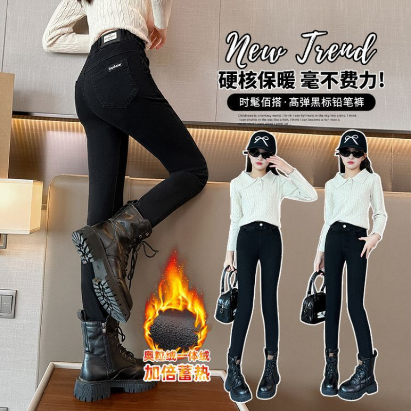 女の子ジーンズ秋冬2024新型子供洋気奥粒パイル弾性ズボン女子児童修身小足ズボン潮