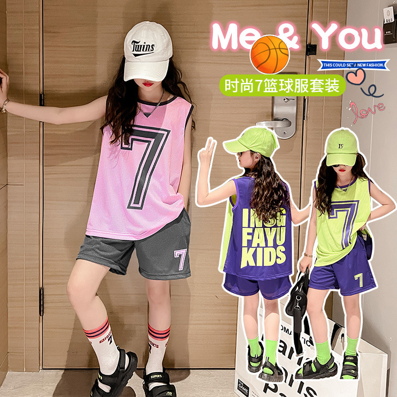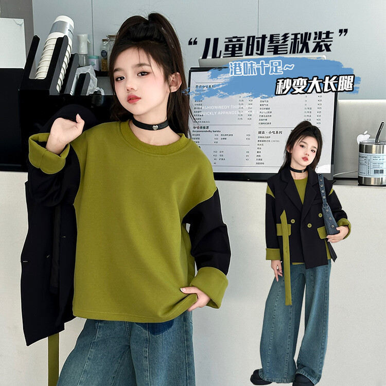 女児秋スーツ2024春秋カジュアル中大童ファッションライン紫撒銀風衣2点セットクロスボーダー
