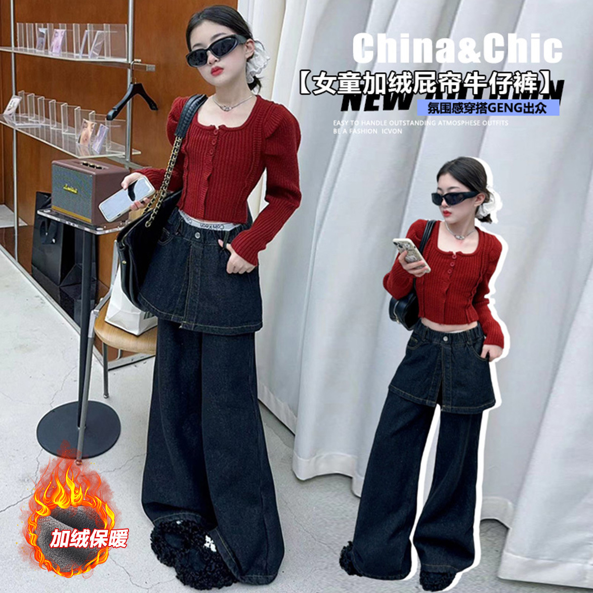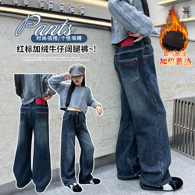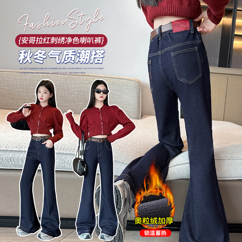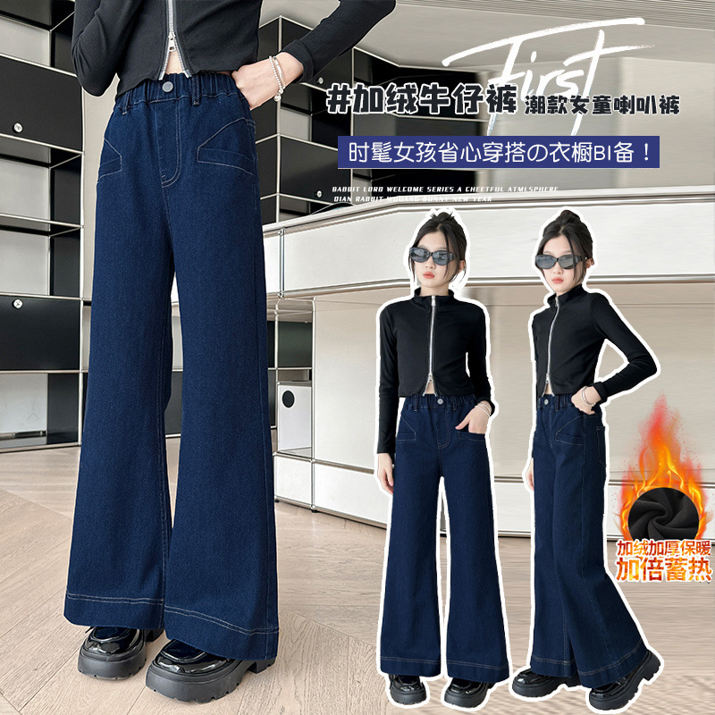 女の子ジーパン春秋冬金2024新型中大童冬装洋気ストレートパンツとベルベット流行マイクロパンツ