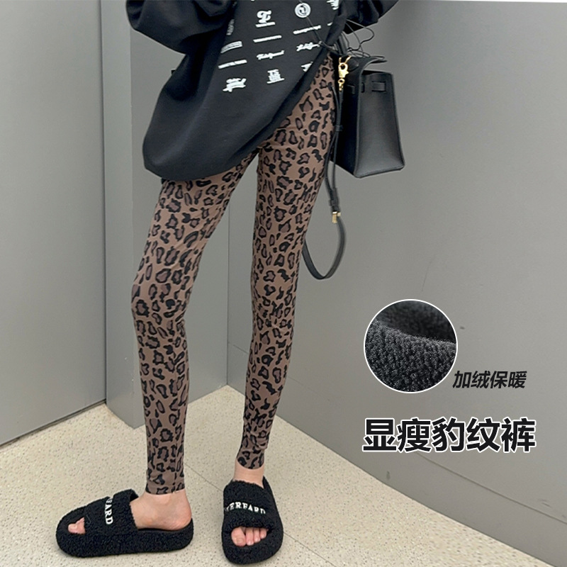 女の子のヒョウ柄のベルベットのレギンスは秋冬の中で子供の外で腹を収めて尻を上げるバービーのサメのズボンの保温ヨガのズボンを着ます。