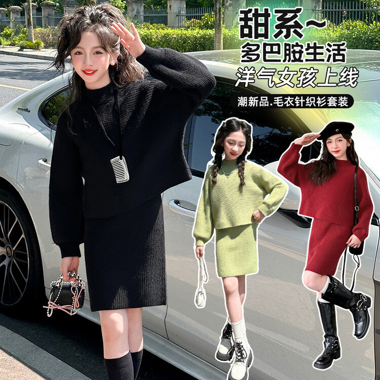 女の子秋冬セーターセット2024新型子供クリスマス新年服女子大童ニットジャケット子供服