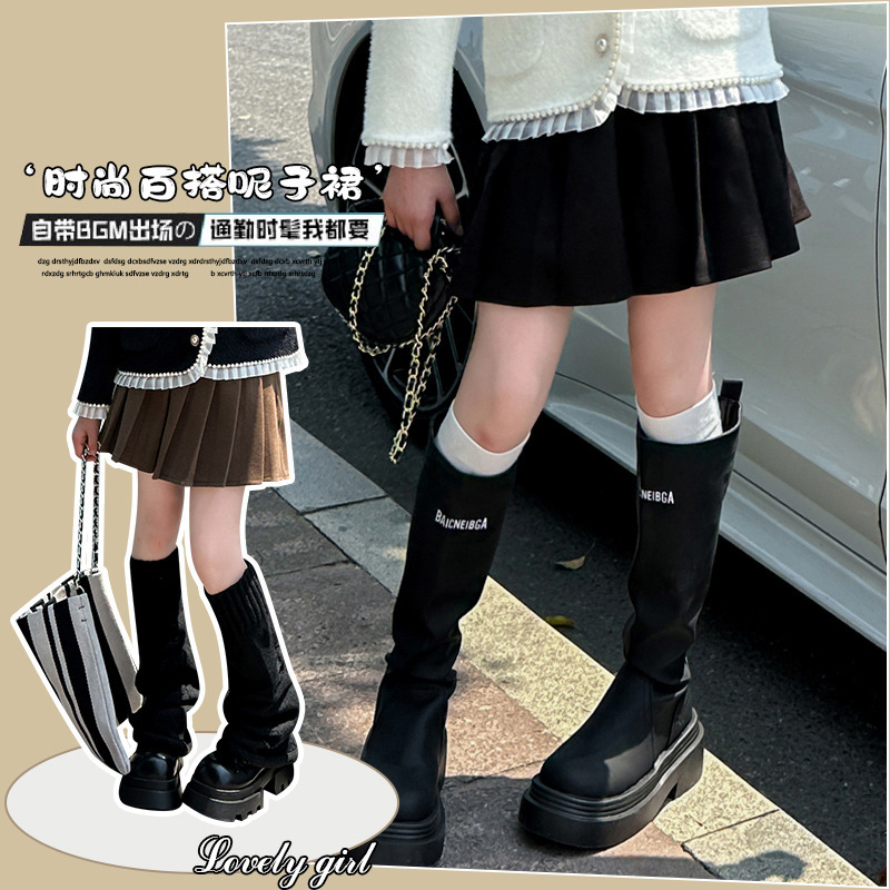 女の子の秋冬のラシャの百パートナーのスカートの2024の新型の中で大きい子供の半身のスカートの子供の厚い洋風のスカートは厚い金を加えます。