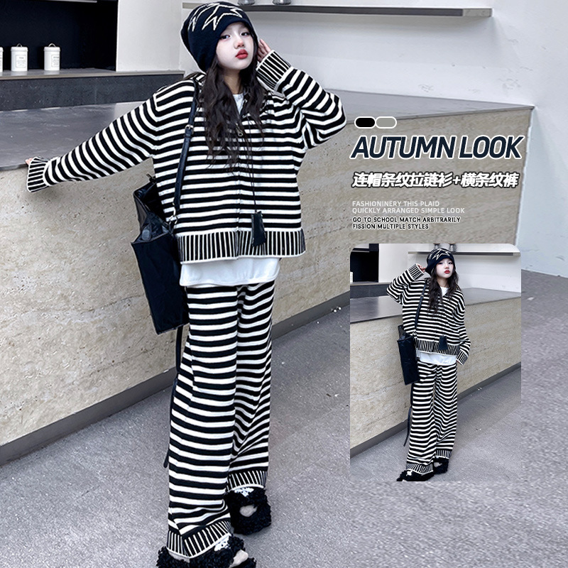 女の子の秋冬のセーターのスーツの2024新型のファッションの女の子の韓系の中で大きい子供の洋気の怠惰な風の2つのセット