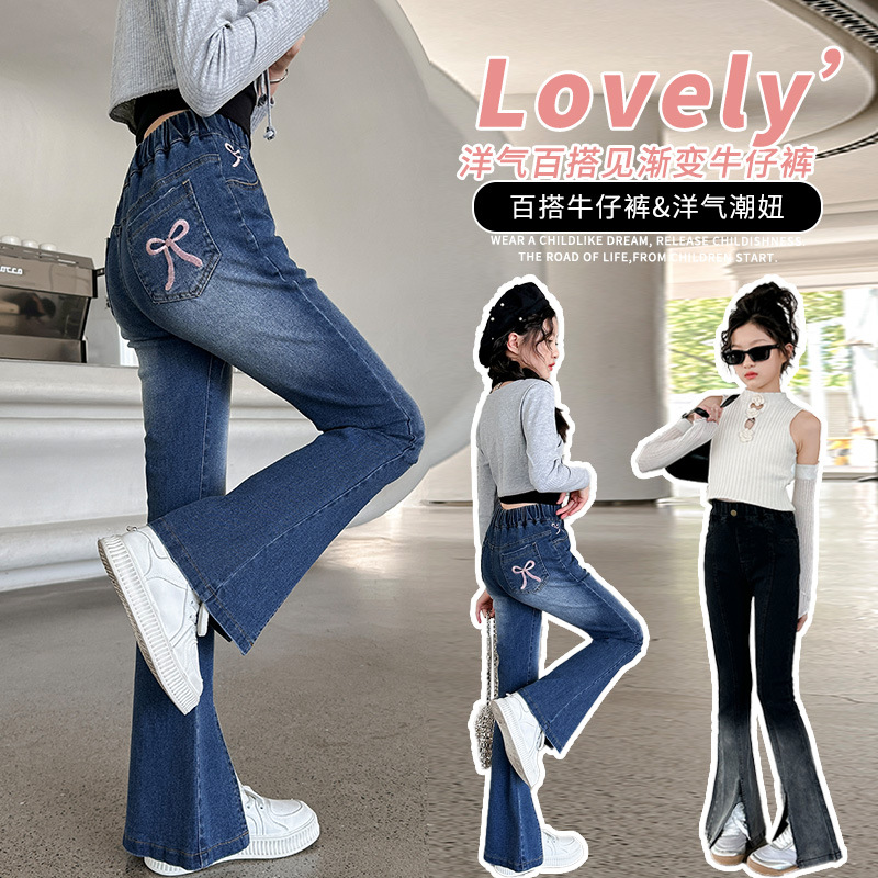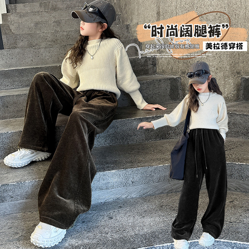 女の子の秋のズボン2024の新しいファッションの女の子の韓国系の中で大きい子供の洋気は白い曲がった刀のズボンを修理して国境を越えます。