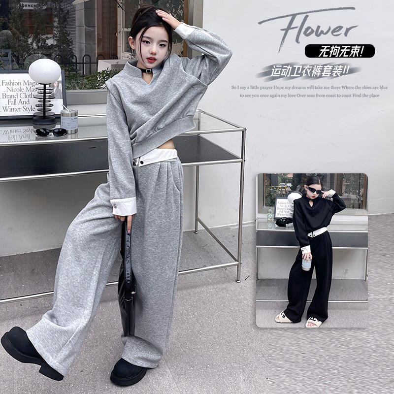 女の子の秋のスーツ2024の新しいファッションの女の子の韓国系の中で大きい子供の洋気の秋冬のタイプの運動のガードルのスーツ