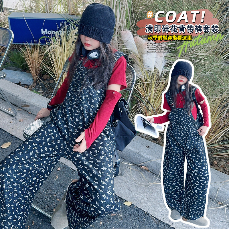 子供用ズボン2024秋の新作の女の子のショーモデルの連体ズボン子供用のプリントがいっぱいです。