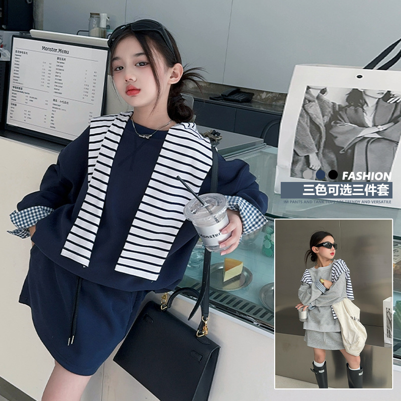 女児の秋の衛衣セット2024新作ファッション女の子の韓国系の子供の洋気ニットの衛衣のハーフスカートのファッション