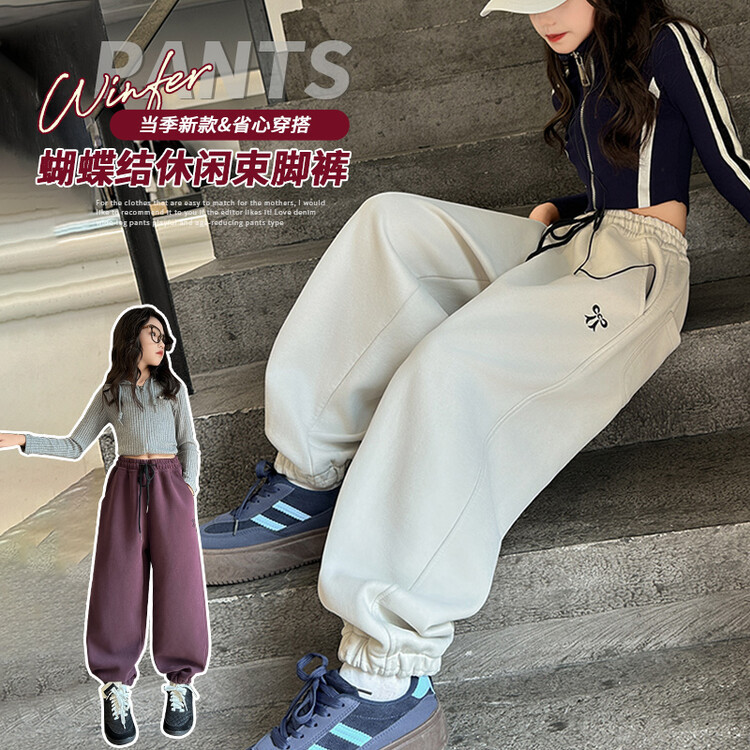 女の子のズボンの秋の2024の新型の子供のカジュアルな衛のズボンの春秋のタイプの女の子の大きい子供の秋の服装の足の衛のズボンの潮
