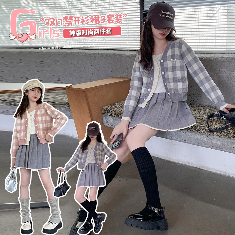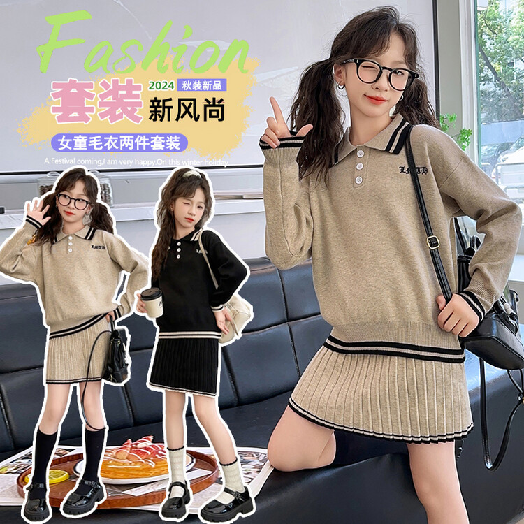 女の子スーツ2024年の新型秋の学院風セータースーツの中の子供の襟の2セットの春秋のスーツ