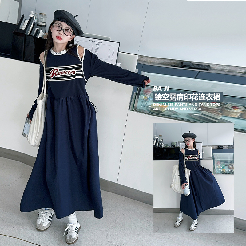 女の子の秋の長袖の長いワンピースの春と秋の洋風のスカートの2024女の子の秋の服の新型のアメリカ式の長いスカート