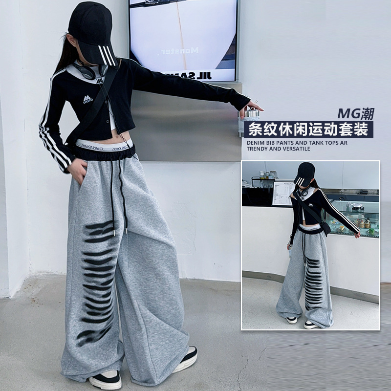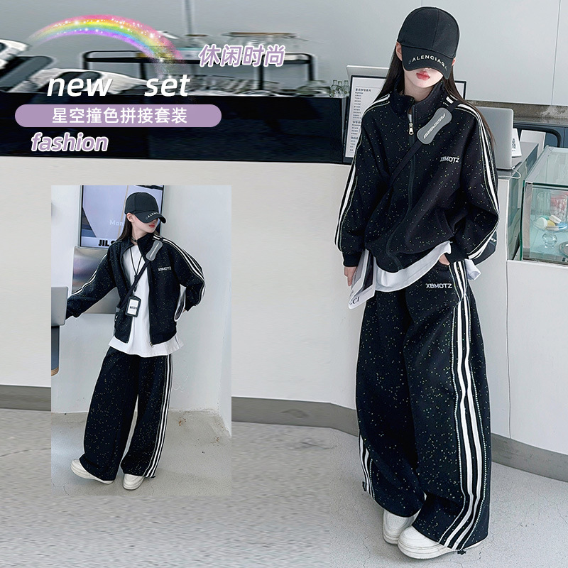 女の子の秋のスーツ2024の新しいファッション女の子の国境を越えたアメリカのスポーツスタイルのズボンの上着の2つのセット