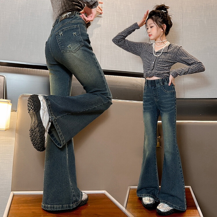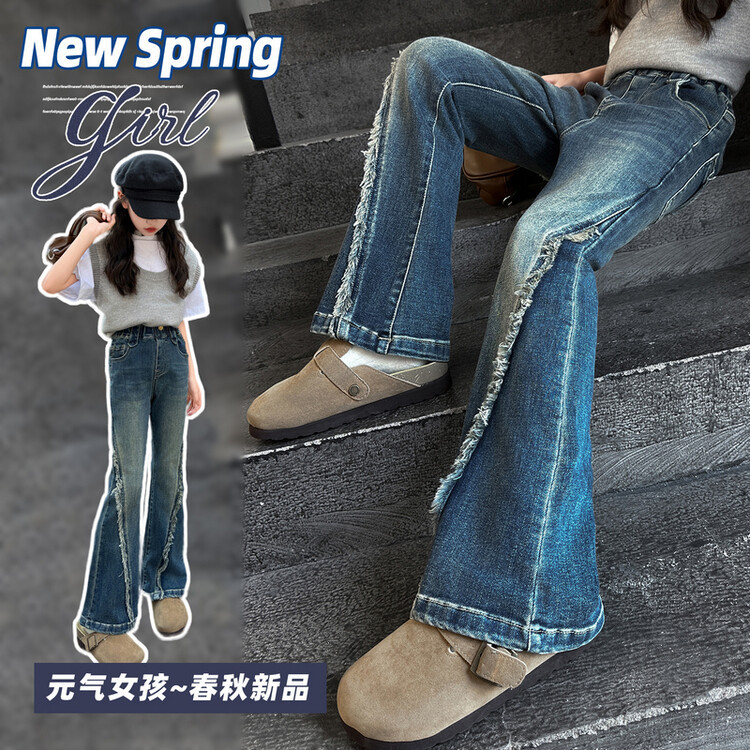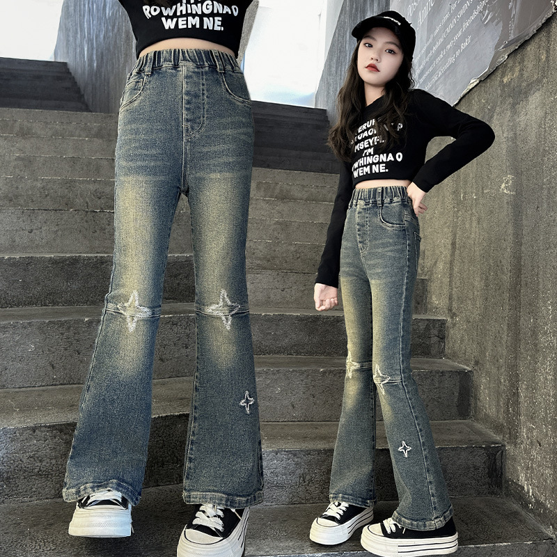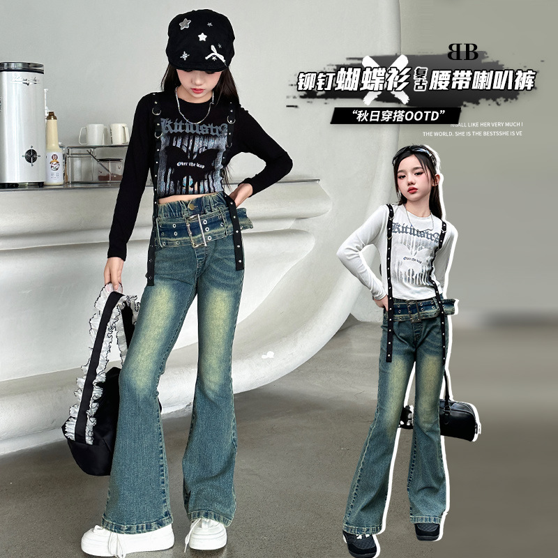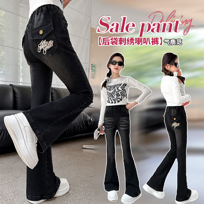 女の子の秋のジーパン2024子供服のジーパンの秋の服の新型の中で大きい子供の女の子のカジュアルな流行のラッパのズボン