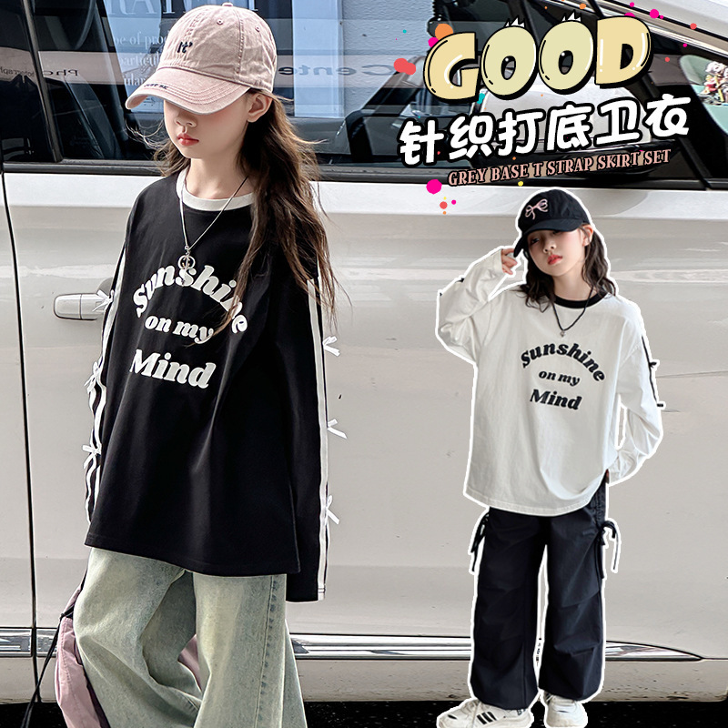 女の子の春秋の上着のの新型の韓国版の中で大きい子供のゆったりしているアルファベットは長袖の底のシャツの潮の子供服を引きます。