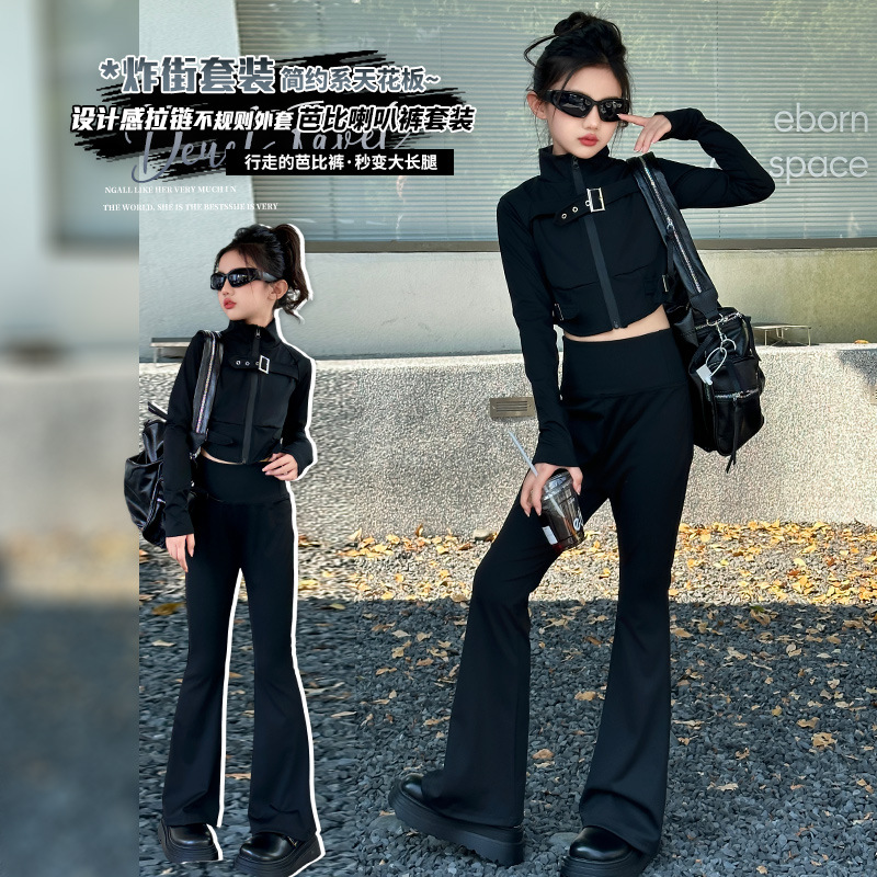 女児の秋のスーツ2024新型のファッションの女の子の韓国系の中で大きい子供の洋気のギャルのマイクロラップバービーのスーツの潮