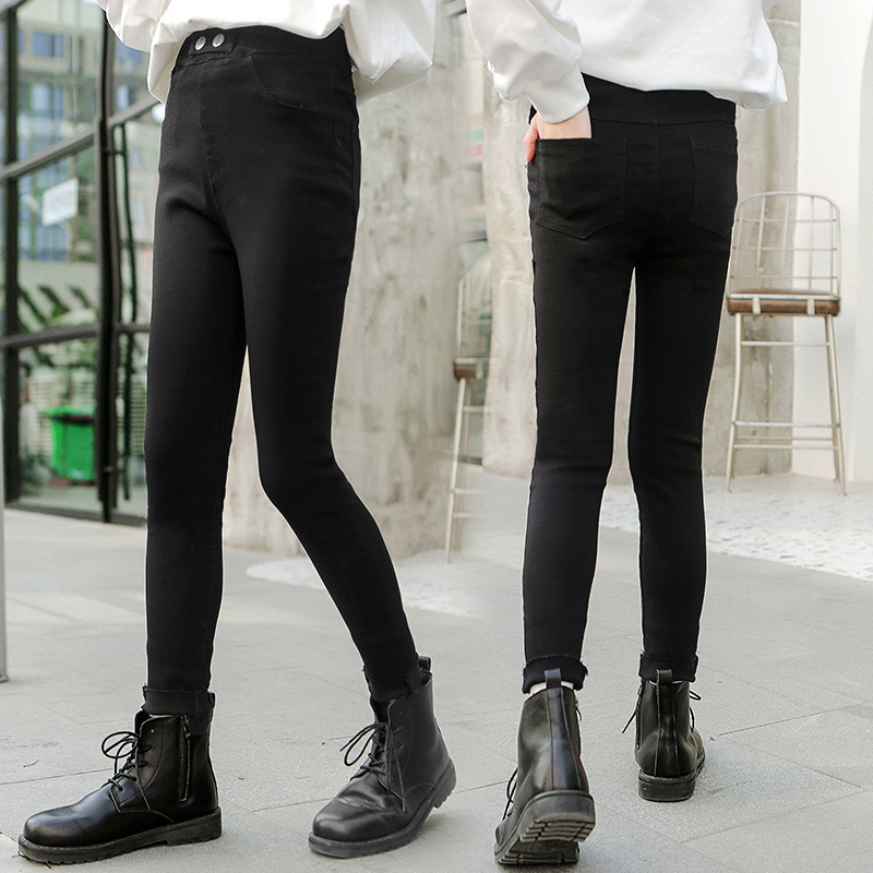 女の子の春秋タイプの高弾力の小さい黒いズボンの洋風の中で大きい子供は小さい足のズボンの2024の新型の秋のタイツを修理します。
