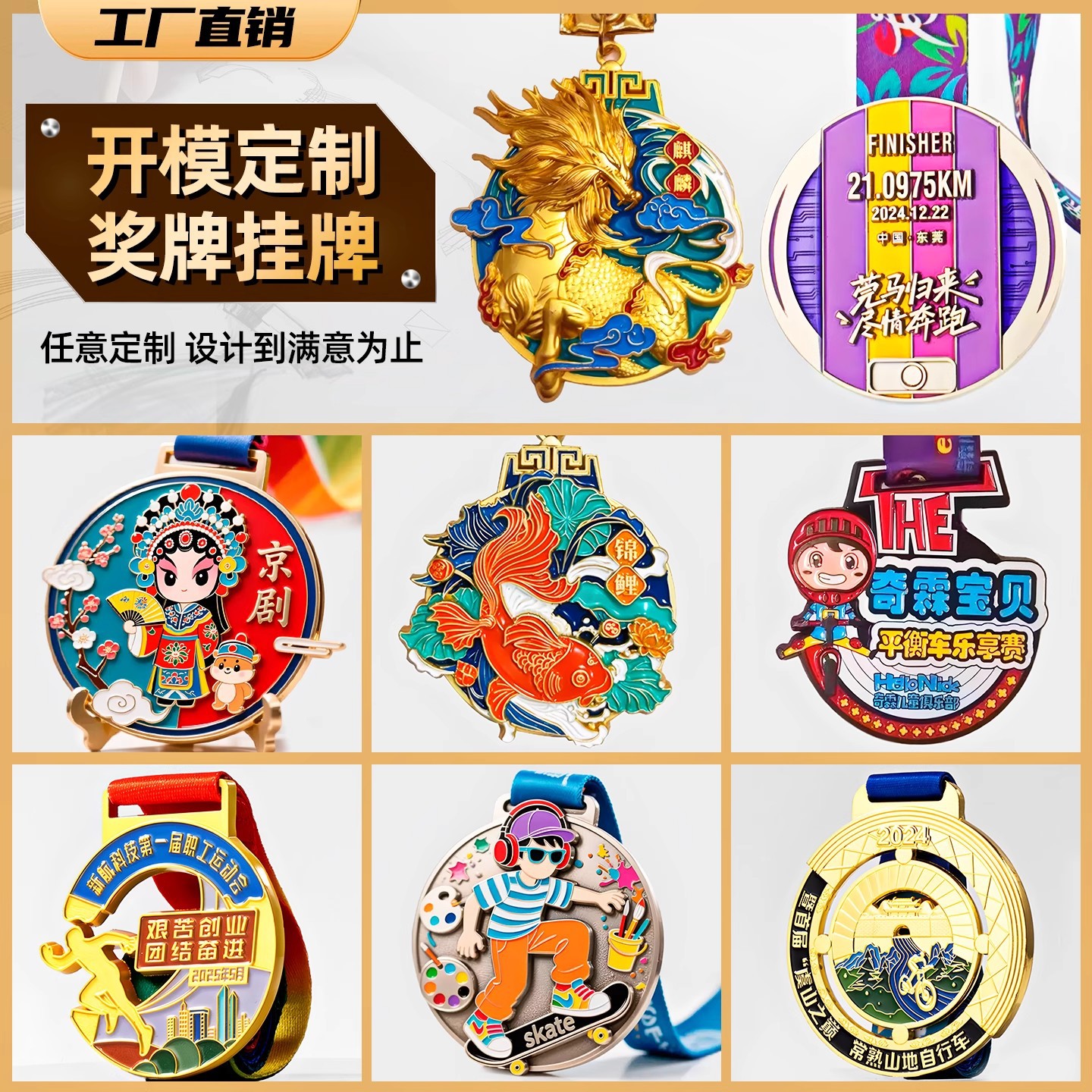 メダルは水晶金属の看板を作って、授賞記念の金メダルの運動会のマラソンのメダルを作ります。