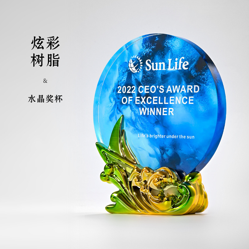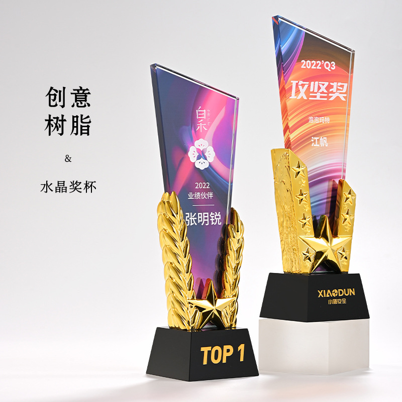 創意水晶トロフィー卸売り高級樹脂優秀社員イベント授賞記念無料彫刻