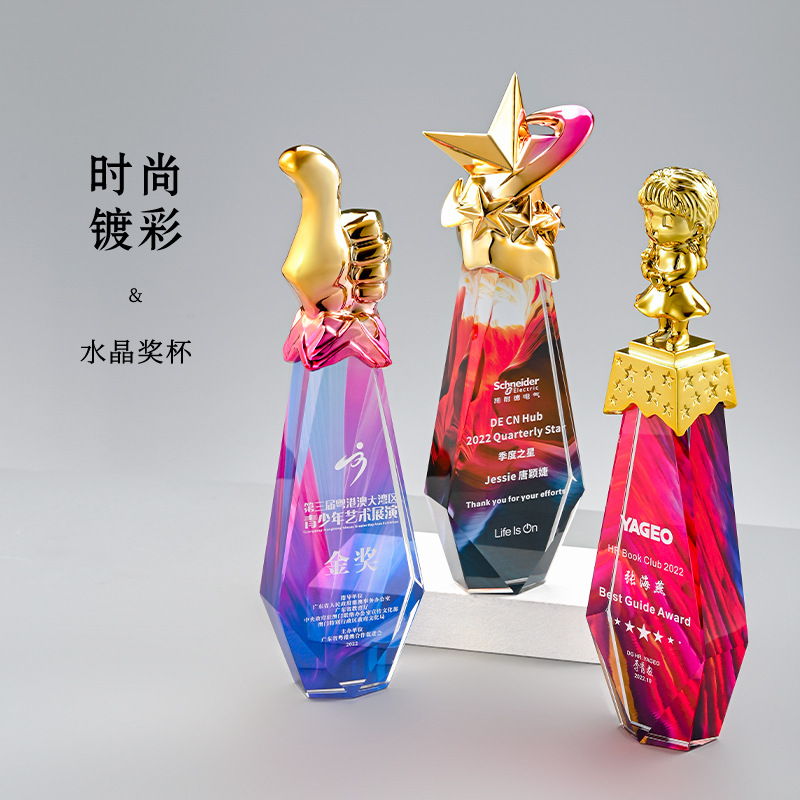 クリエイティブ水晶トロフィー彫刻卸売りカラー水晶トロフィー会社試合彫刻トロフィープレゼント授賞
