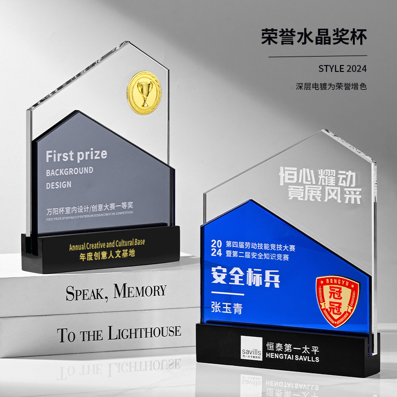 水晶トロフィー制作デザイン創意優秀社員運動会栄誉置物トロフィーメダル制作卸売り