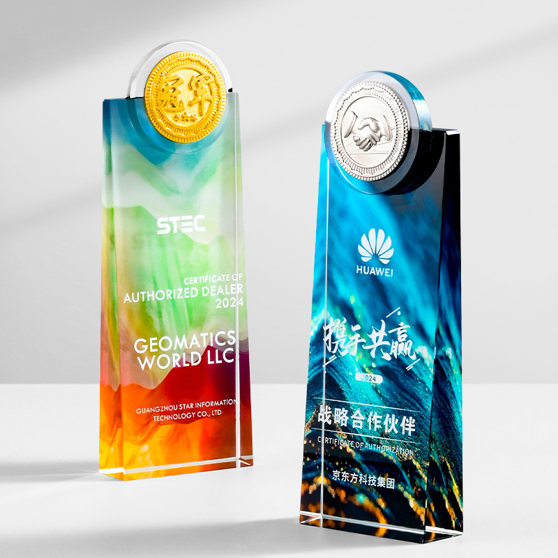 クリスタルトロフィー制作デザイン卸売り優秀社員チーム退職置物メダル創意金属トロフィー卸売り