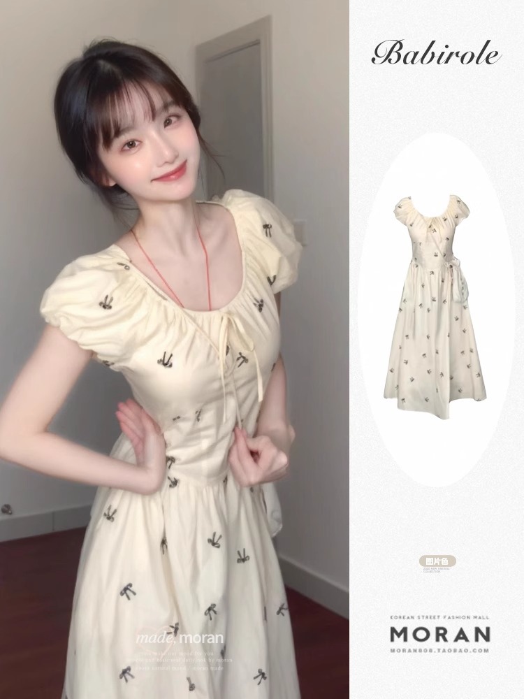 女性のためのフレンチフローラルパフスリーブドレス2025年夏の新しいニッチハイエンドの美しいロングスカート