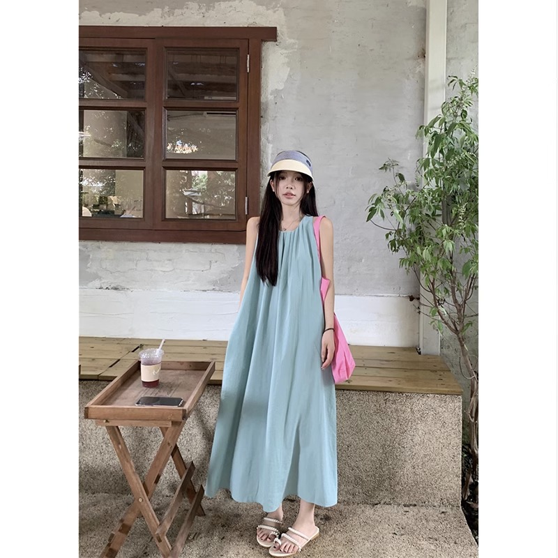 ノースリーブベストドレス女性の夏の2025新しい海辺の休暇ハイエンドホルターネックサスペンダービーチロングドレス