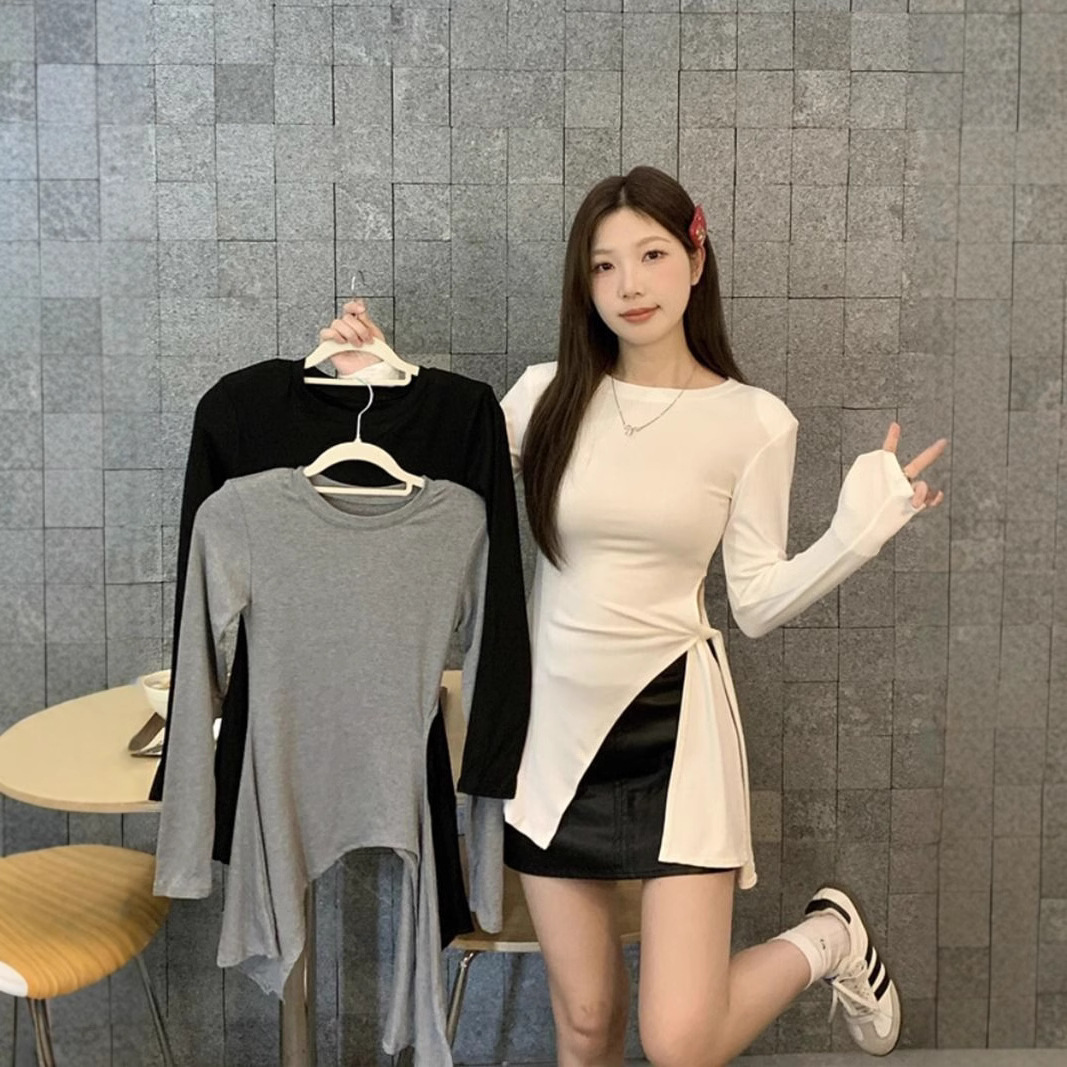 MR【現物】デザイン感tシャツ女装秋冬重ね着インナーシャツガードルスリム着痩せショートタイプ