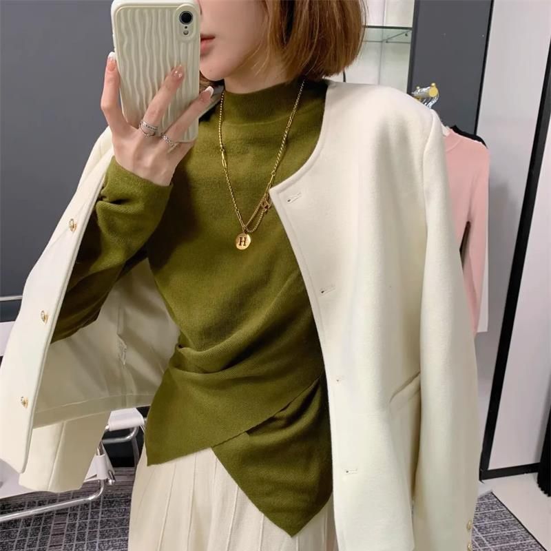 芯の糸の方の襟のファッションの底のシャツの秋冬の新型のセクシーな洋風の百合の純色のニットのセーターの上着の女性