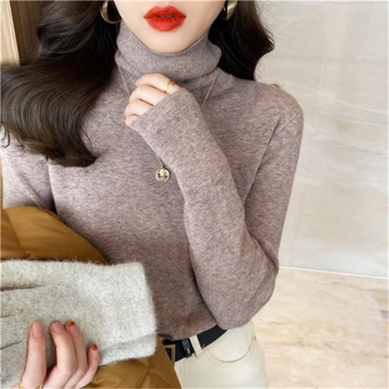 秋冬の新型の韓国版の黒色の百合の高襟は厚くて身を修める長袖のメリヤスの底のシャツの保温の上着の外で掛けます。