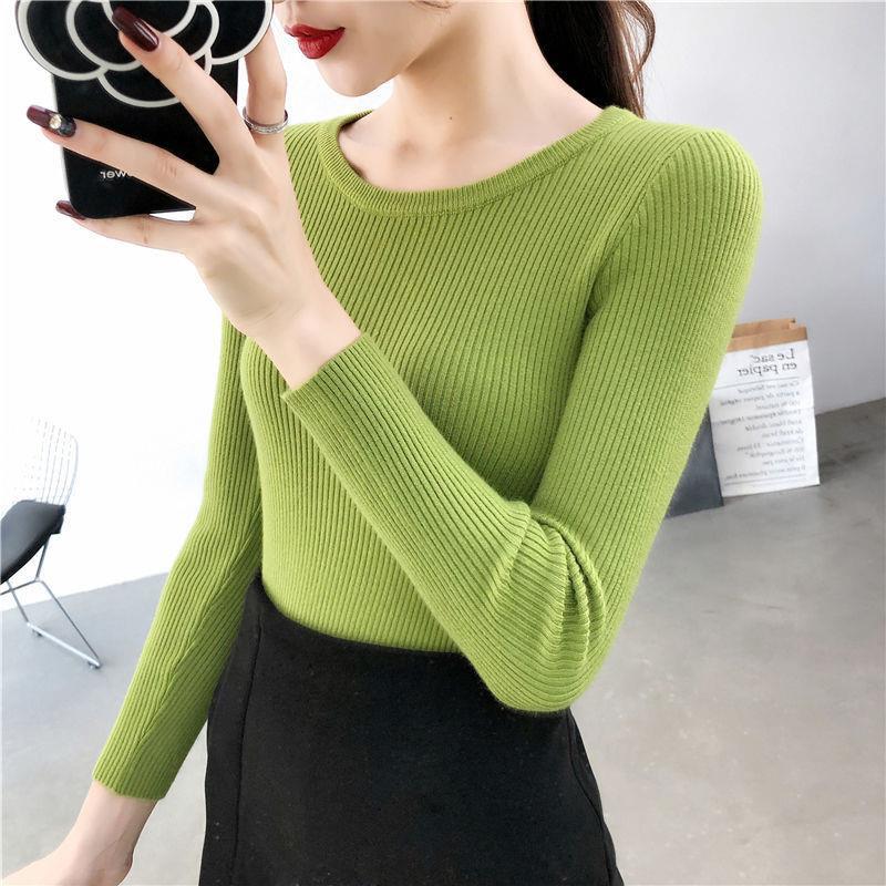 秋冬の新型の修身の中に長袖の洋風の底のニットの女性の上着を掛けます。