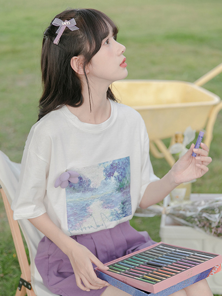学生半袖tシャツ女性デザイン感小衆夏2022韓風chi優しくユニークな白い上着