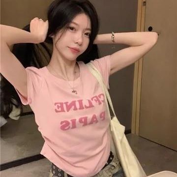 氷糸ねじ発泡アルファベット半袖tシャツ女装夏修身ショートギャル百合上着外着